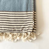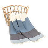 - The Beyza Blue-Grey Turkish cotton towel is made of 100% Turkish cotton and produced in Turkey.