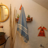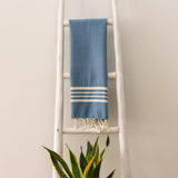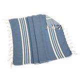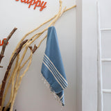 - Yasmin Blue Hand Towel with fringes is high-quality, 100% natural Turkish Cotton.