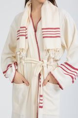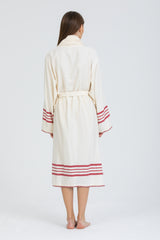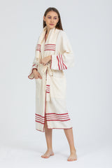 - Su Luxury Bathrobe White-Bordeaux with small towel is high-quality.