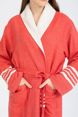 - Toprak With Terry Cotton Bathrobe Red with Small Towel is high-quality.