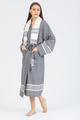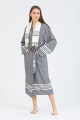 - Azra D.Gray Cotton Bathrobe is high-quality, 100% natural Turkish cotton.