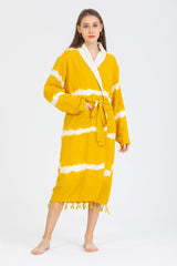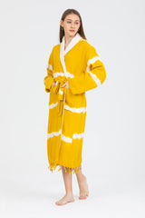 - Bathrobe and towel are woven separately, and the inner towel is sewn from the edges of the bathrobe.